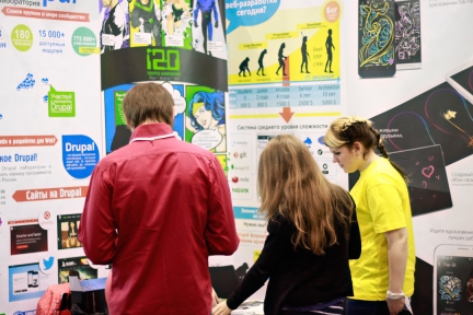 В дни проведения соревнования в Новосибирском Экспоцентре была организована выставка, где мы рассказывали всем интересующимся школьникам и студентам о возможности обучаться веб-разработке (программированию веб-приложений) и смежным специальностям на базе Новосибирского техникума электроники и вычислительной техники (НТЭиВТ) и о том, как получить работу своей мечты.